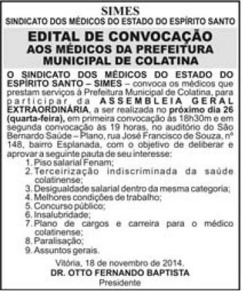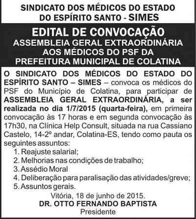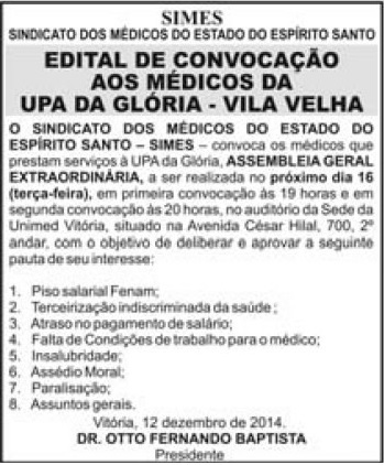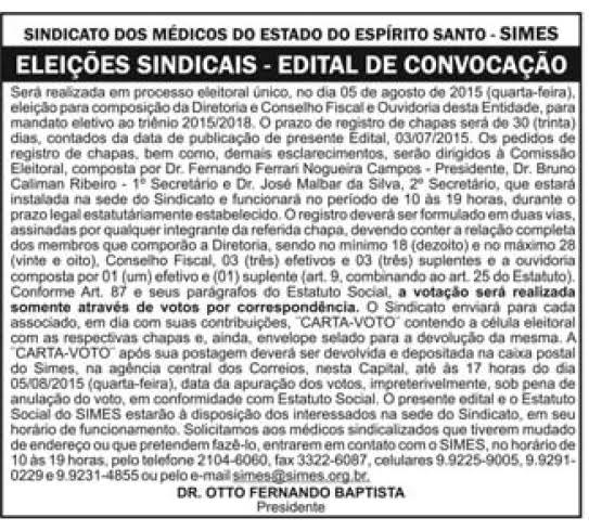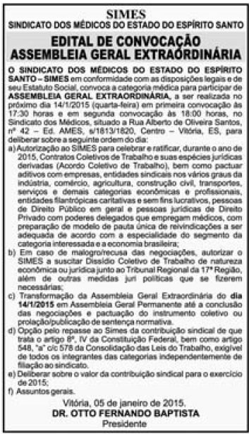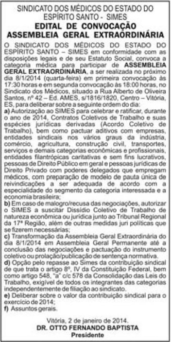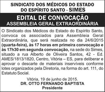 Este espaço é destinado a publicação de editais de convocação para assembleias, reuniões e eventos.